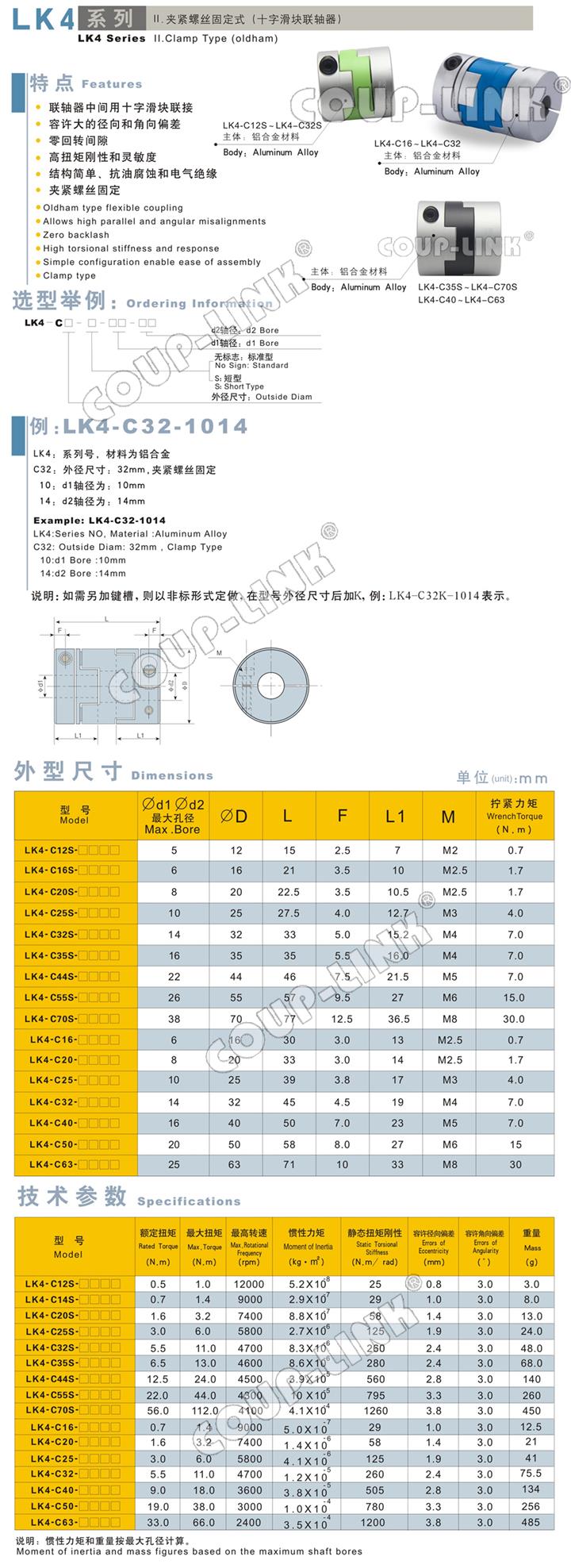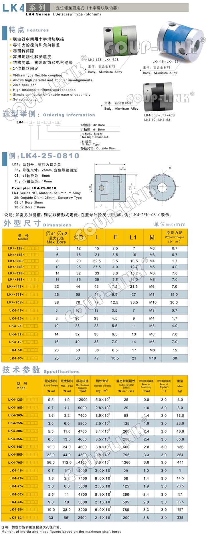 产品详情:广州菱科COUP-LINK LK4系列交叉滑动联轴器: